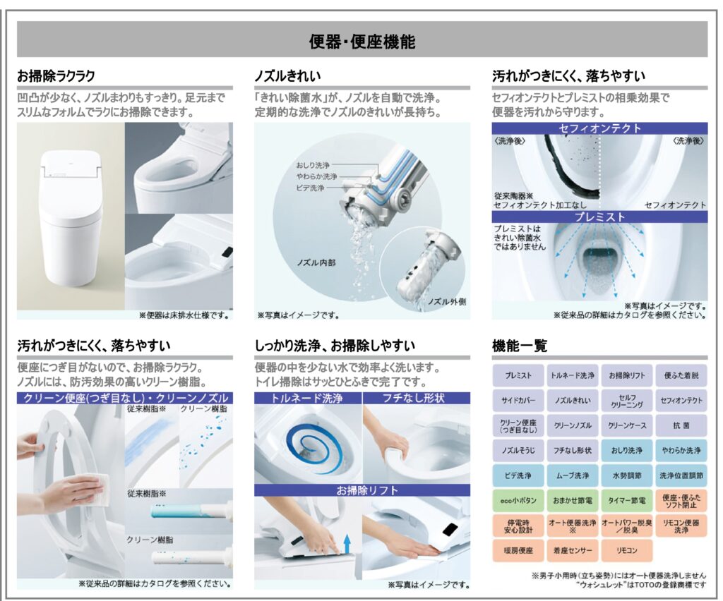 ・一体型便器タイプ ・陶器便器 ・ウォシュレット ・温水暖房便座 ・節水仕様